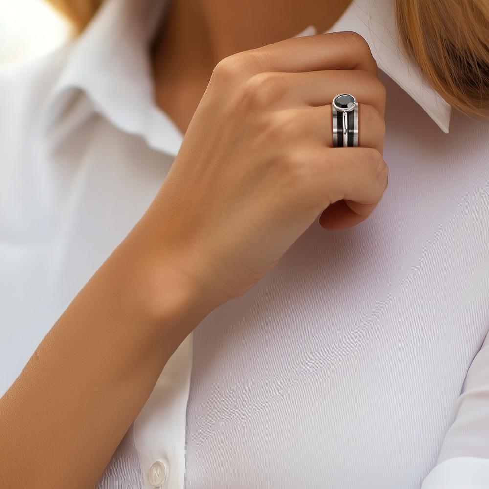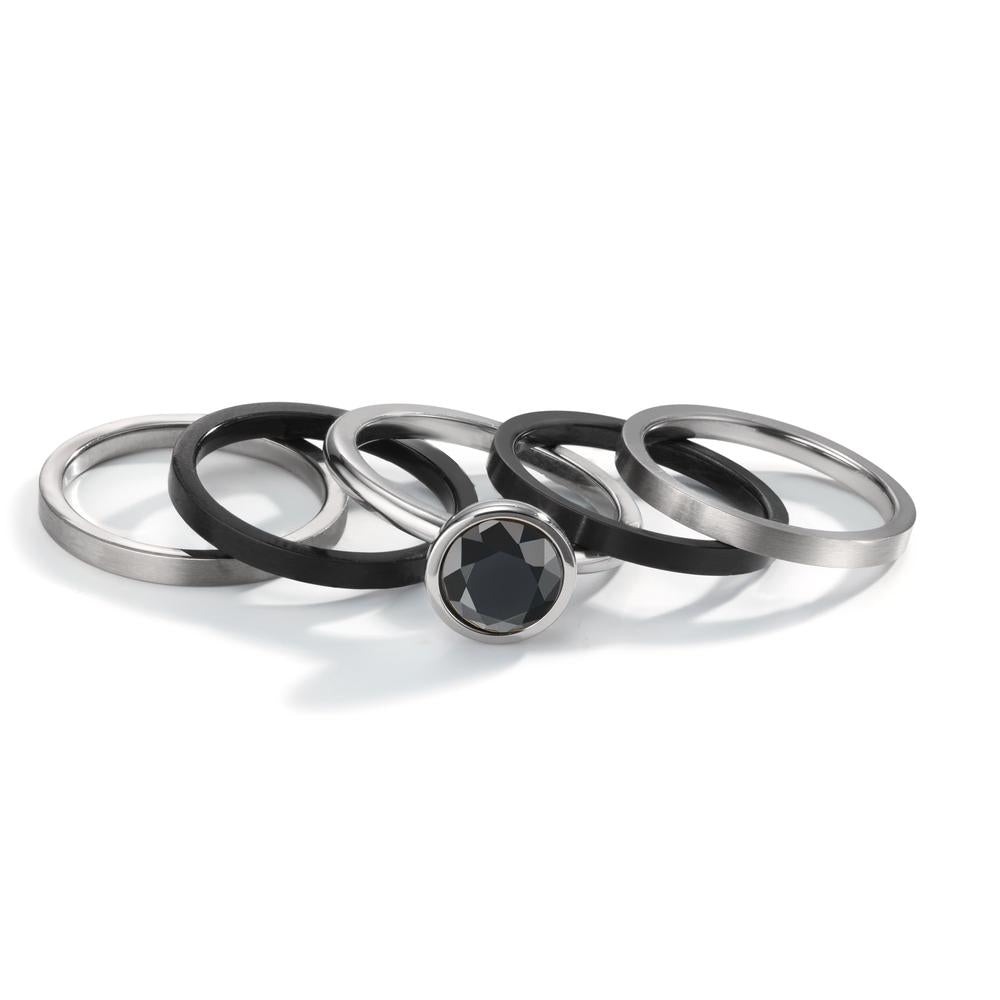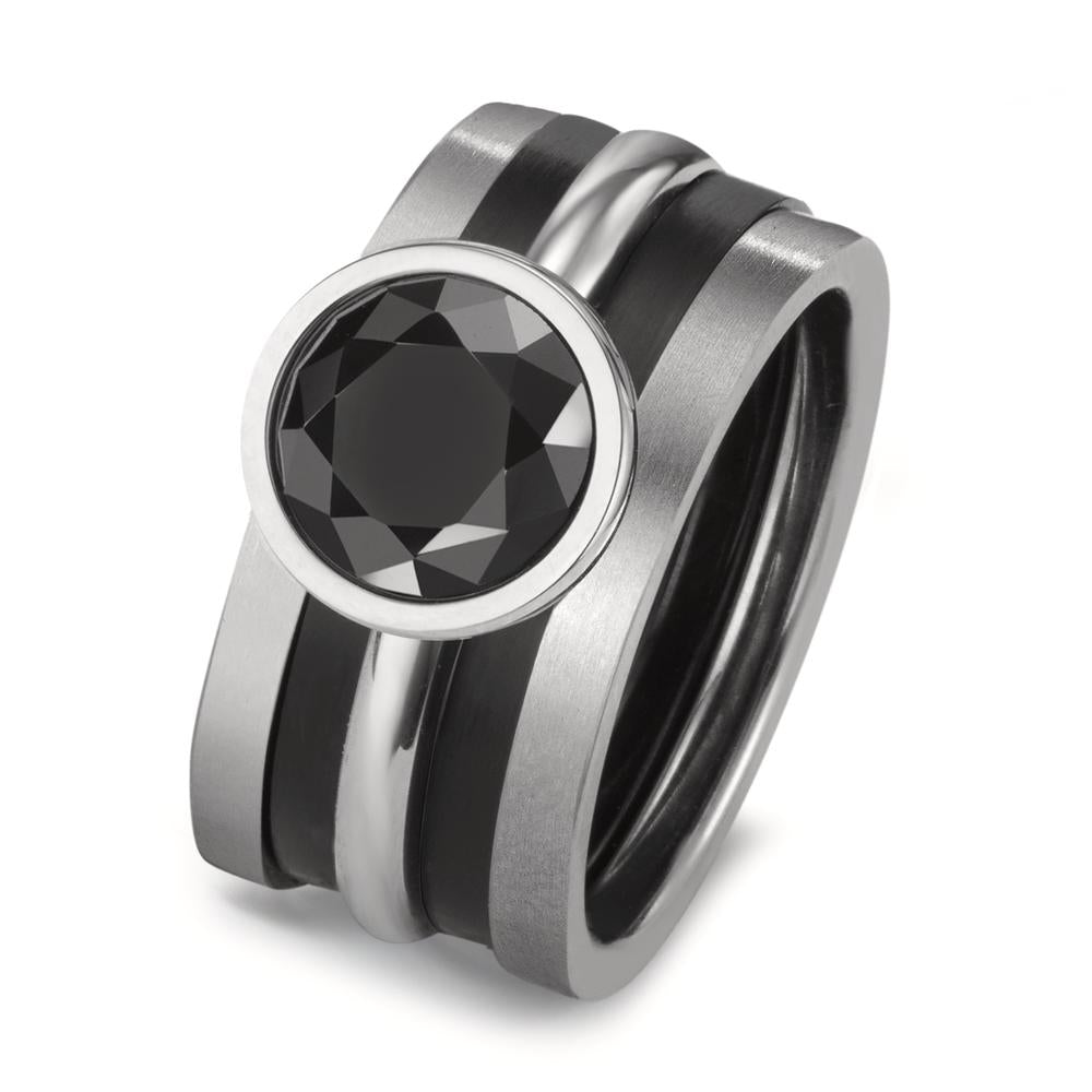 Dieses elegante Damen Ringset besticht durch modernes Design und hochwertige Verarbeitung. Die Ringe aus robustem Edelstahl sind kombiniert mit einem funkelnden, schwarzen Zirkonia-Stein, der jedem Outfit einen exklusiven Akzent verleiht. Vielseitig tragbar und ein Schmuckhighlight für jeden Anlass.