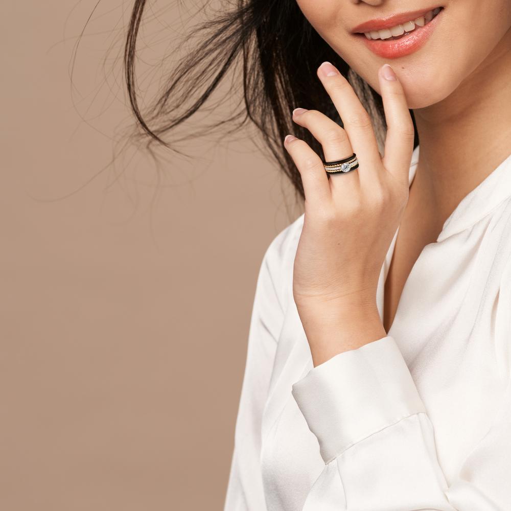 Dieses elegante Damen Ringset vereint modernes Design mit klassischem Flair. Die Kombination aus goldfarbenen und schwarzen Elementen wird durch funkelnde Zirkonia-Steine stilsicher ergänzt. Perfekt für jeden Anlass und ein echter Hingucker an Ihrer Hand.