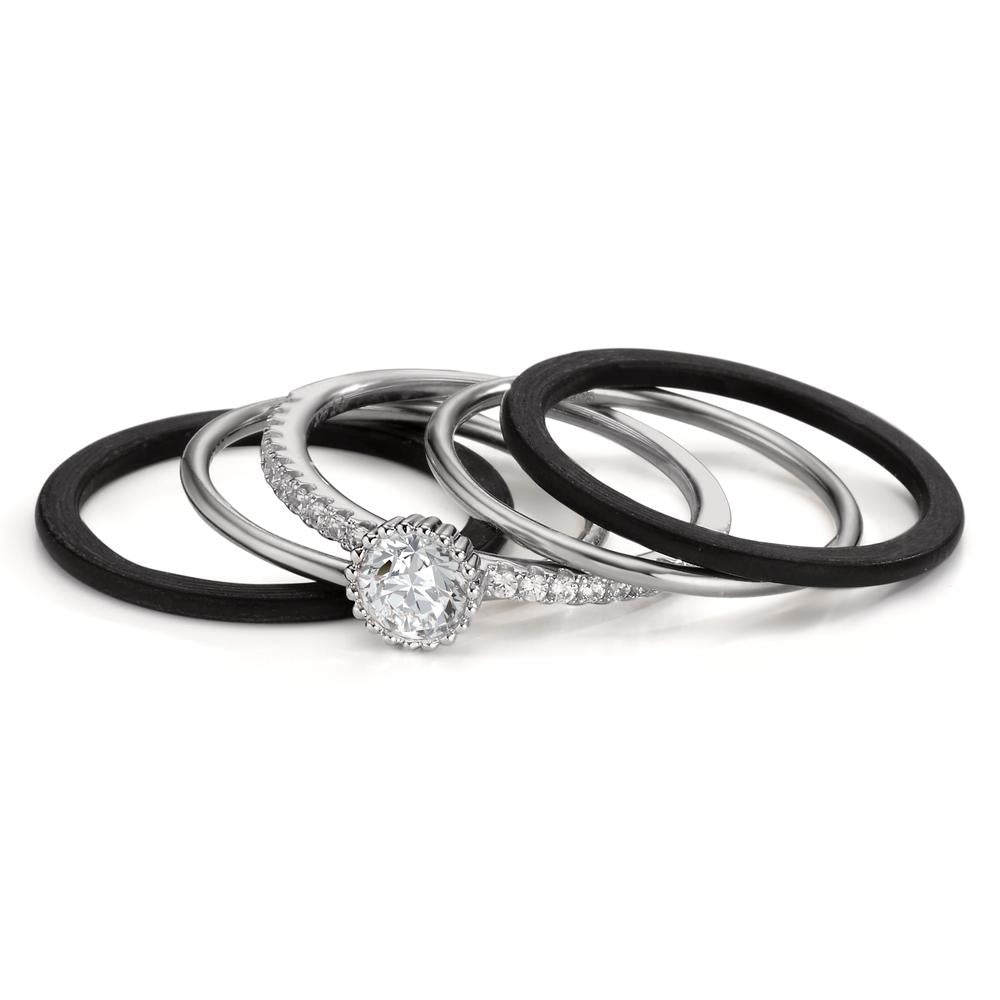 Modernes Damen-Ringset aus hochwertigem Material mit eleganten Zirkonia-Steinen. Das Set verbindet edles Silber mit einem kontrastreichen schwarzen Ring und funkelnden Zirkonia, ideal für stilbewusste Frauen, die zeitlose Eleganz und besonderen Charme suchen.