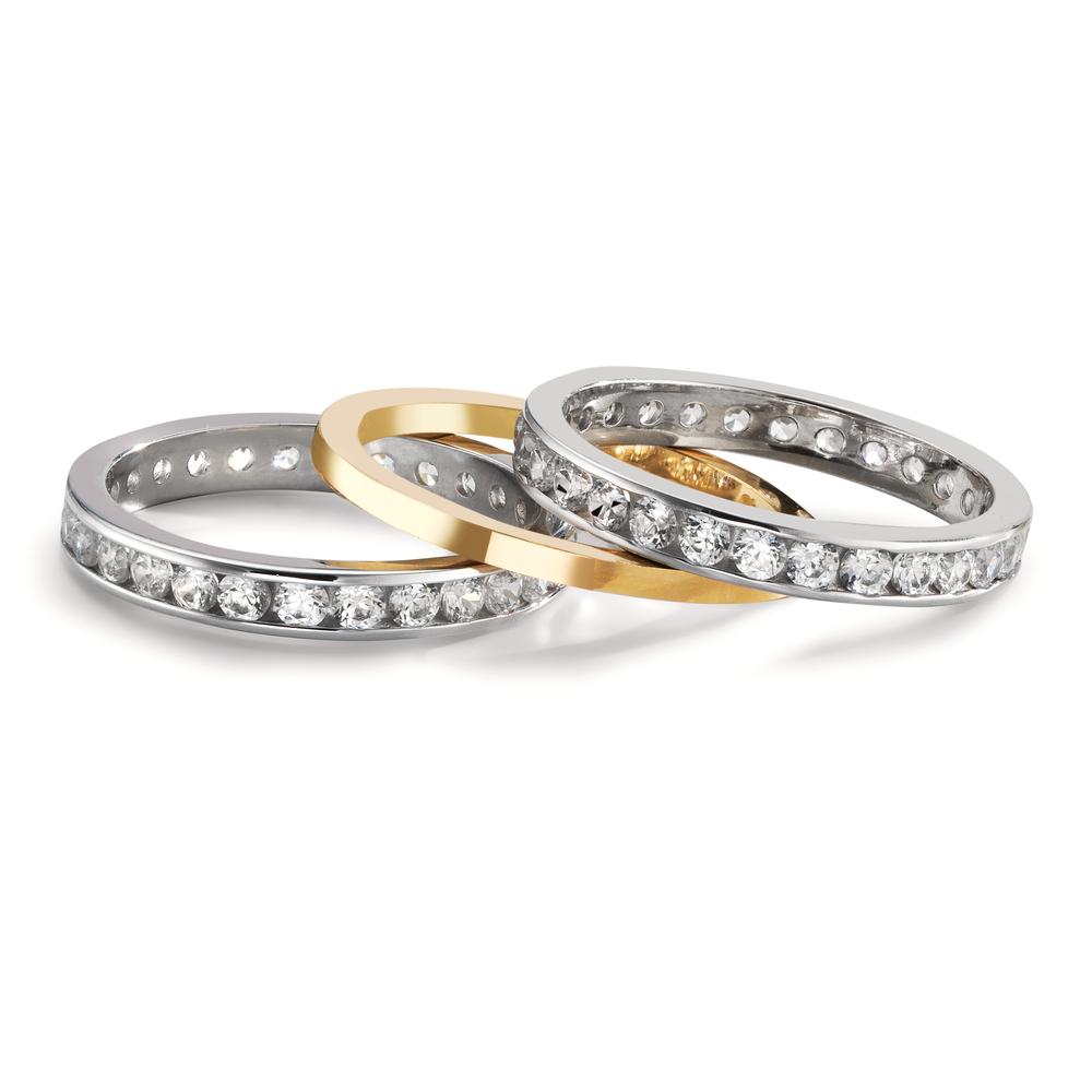 Ringset 750/18 K Weissgold, 750/18 K Gelbgold Zirkonia