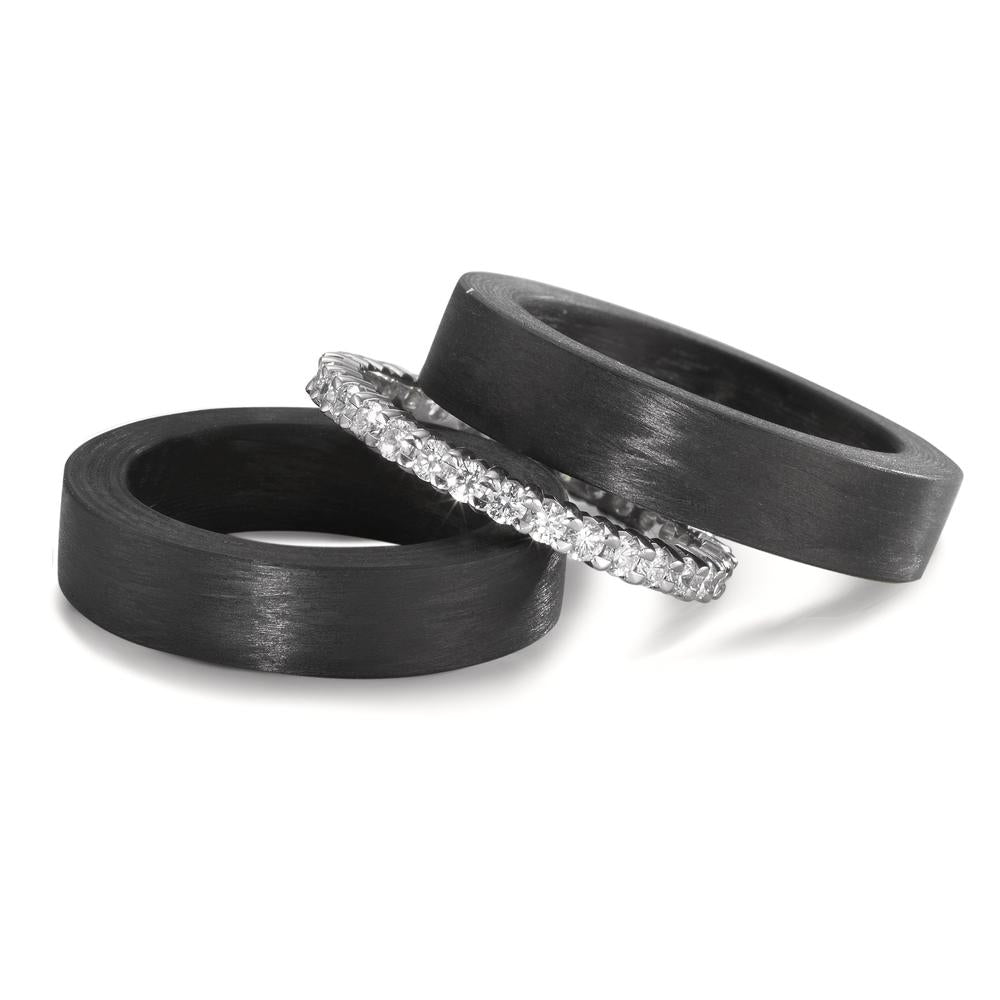 Ringset 750/18 K Weissgold, Carbon Zirkonia