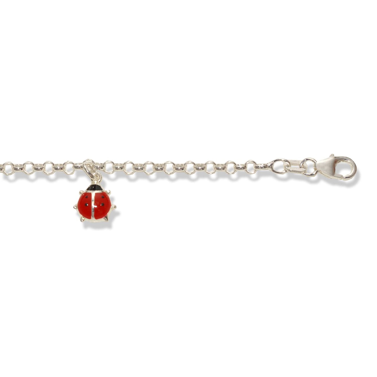 Hübsches Armband mit kleinen Gliedern aus hochwertigem Silber. Ein entzückender, rot-schwarzer Marienkäfer-Anhänger sorgt für charmante Akzente. Perfekt als Glücksbringer oder stilvolles Accessoire für jeden Anlass. Länge individuell verstellbar.