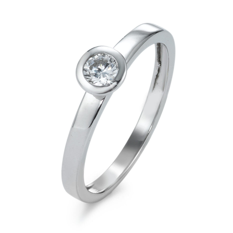Eleganter Damen Solitär Ring aus 375er Weißgold mit funkelndem Zirkonia. Das zeitlose Design mit schlichter, polierter Ringschiene macht diesen Ring zum perfekten Begleiter für jeden Anlass. Ein stilvolles Schmuckstück, das Ihre Hand dezent strahlen lässt.