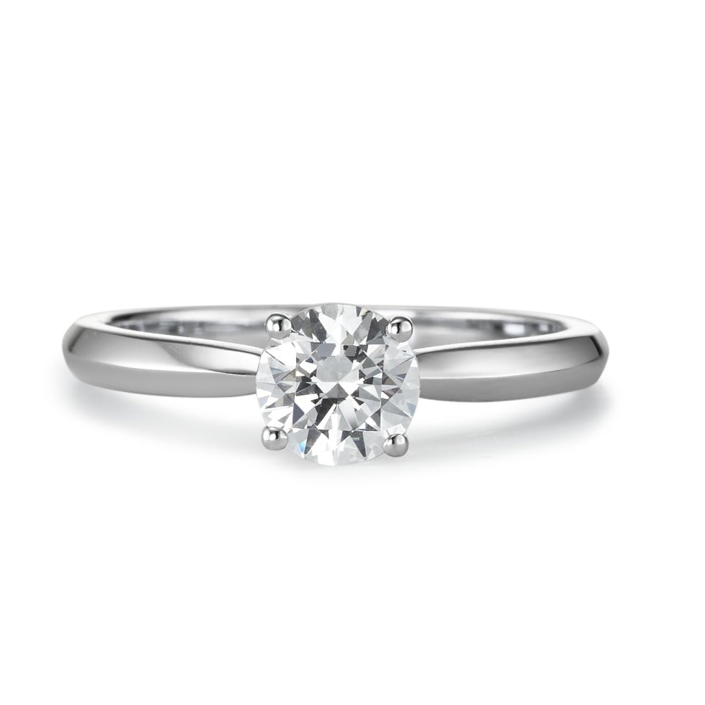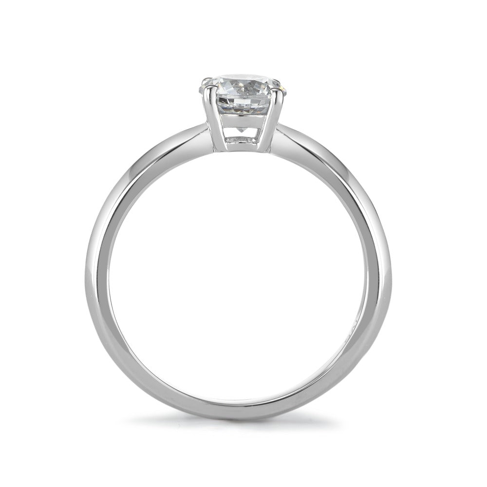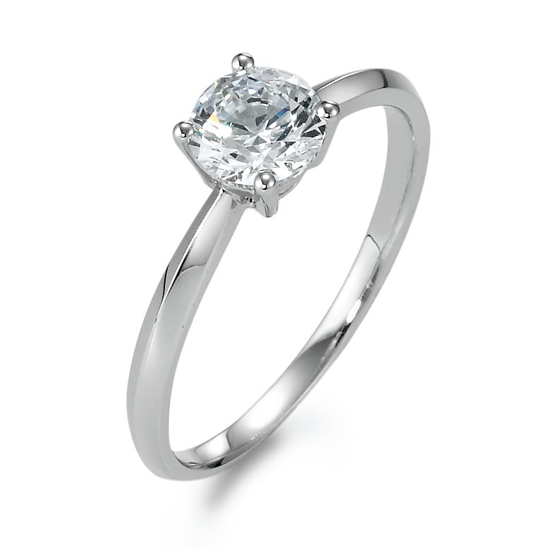 Solitär Ring Silber Zirkonia weiss, rund, 6 mm rhodiniert