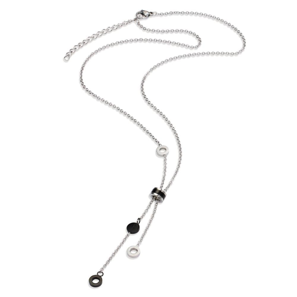 Elegantes Damen-Collier aus hochwertigem Edelstahl. Das moderne Design mit kontrastierenden schwarzen und silberfarbenen Elementen verleiht jedem Outfit einen stilvollen Akzent. Robust, langlebig und perfekt für jeden Anlass – ein zeitloses Schmuckstück für Damen.